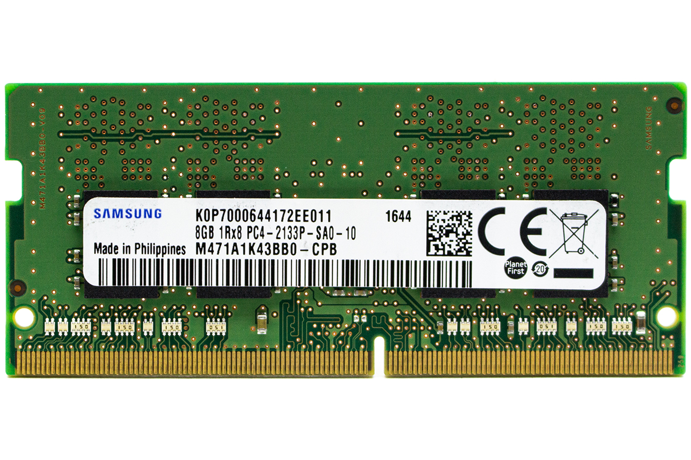 Бывший в употреблении модуль памяти SODIMM Samsung M471A1K43BB0-CPB стандарта DDR4, с объемом памяти 8GB и пропускной способностью PC17000..
