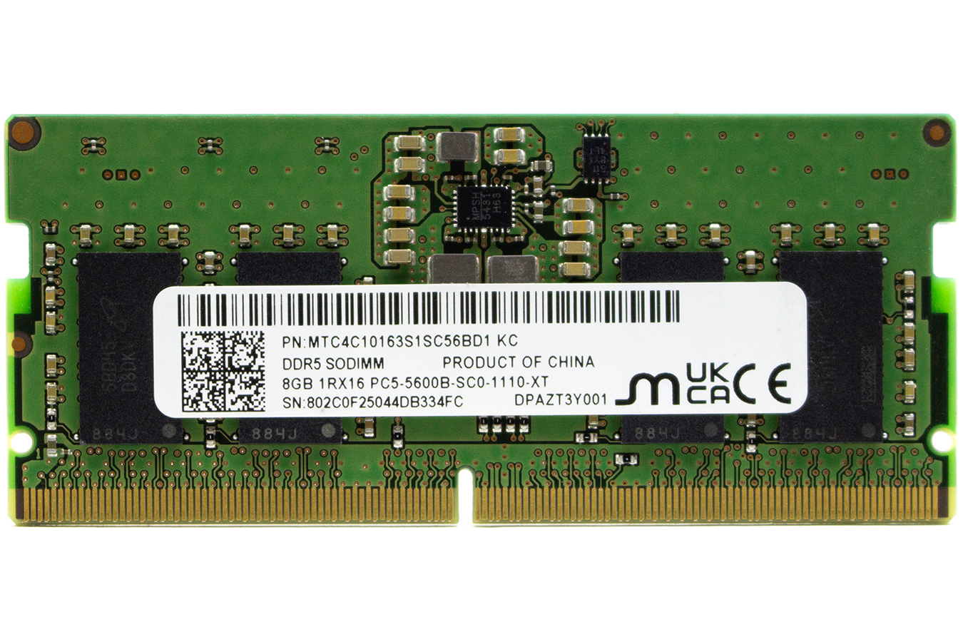 Модуль памяти SODIMM Micron MTC4C10163S1SC56BG1 стандарта DDR5, с объемом памяти 8GB и пропускной способностью 44800 Мб/с и частотой 5600 МГц. Перед покупкой убедитесь, что Ваш ноутбук поддерживает ти..